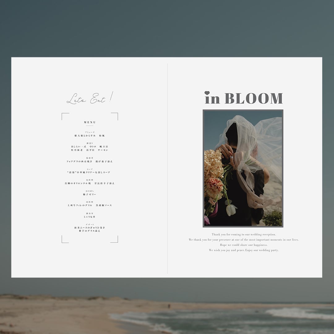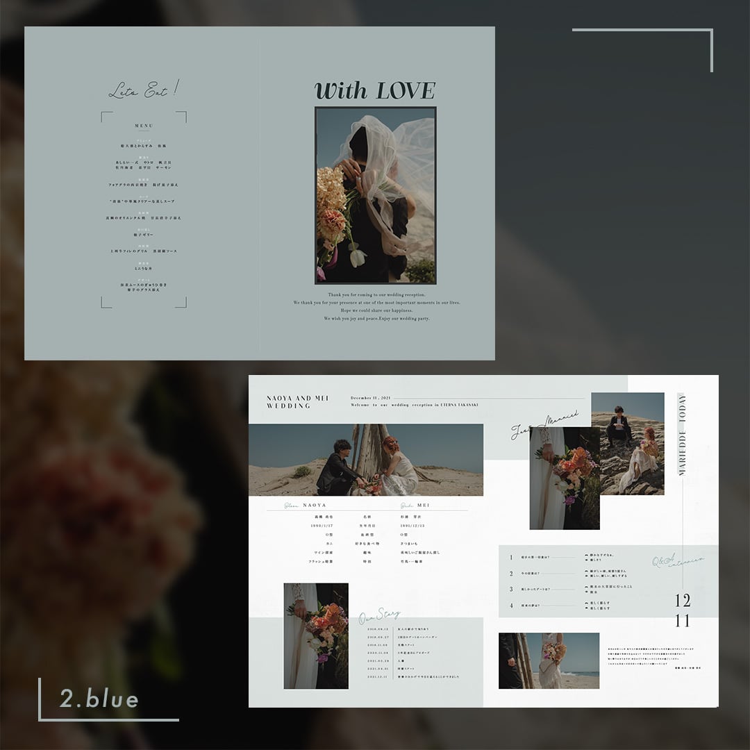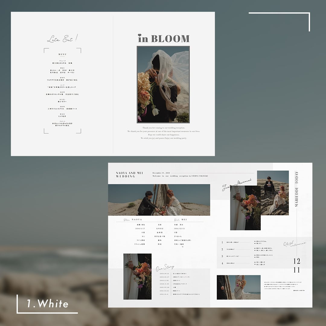 たっぷりお二人の自己紹介ができる、洋書のようなpaperデザイン^^